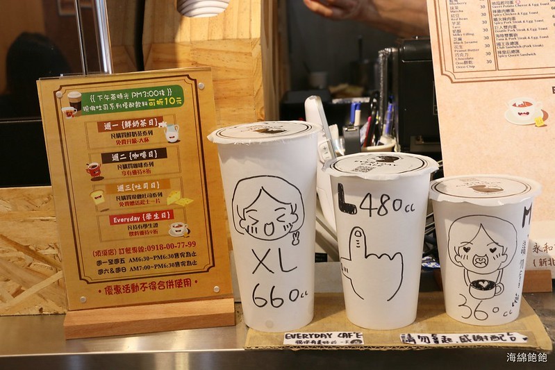 中永和早午餐『EVERYDAY CAFE(頂溪店)』超多料柔軟吐司三明治,巨人肉蛋吐司、海陸雙響砲、辣雞肉嫩蛋、芋頭雪泥蛋,菜單價位(捷運頂溪站)