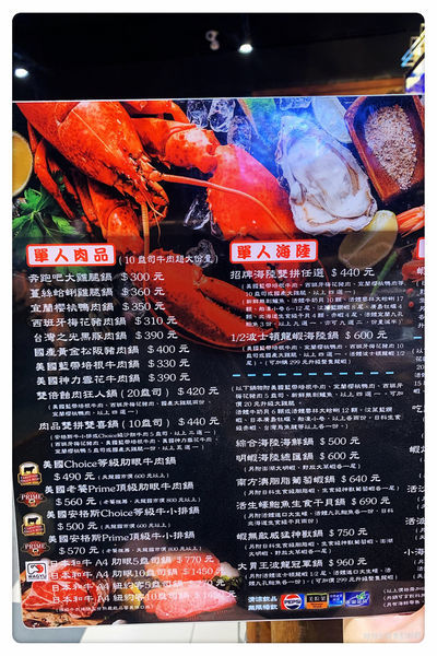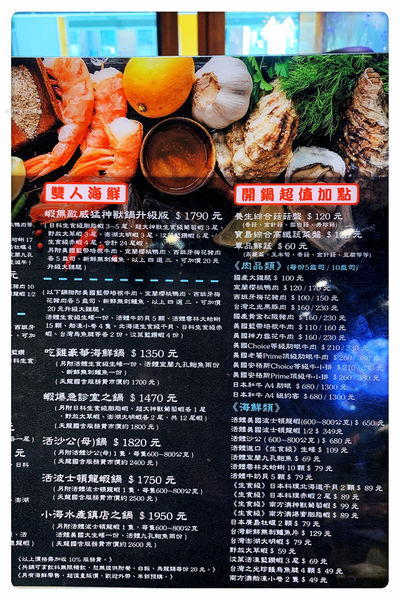 肉品4選1、海鮮9選1(海鮮也可9選2,量減半)