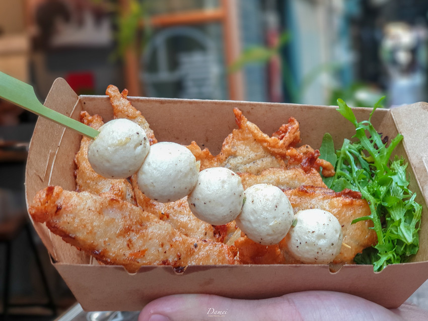 一旁的攤子早上會營業,也可以早上來攤子買炸物或是新鮮丸子。