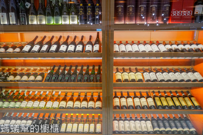 一整排坐落在走道旁的白紅酒,搭配海鮮更有情調,吃蟹搭配些許白酒,啖蟹把酒,好不快活!