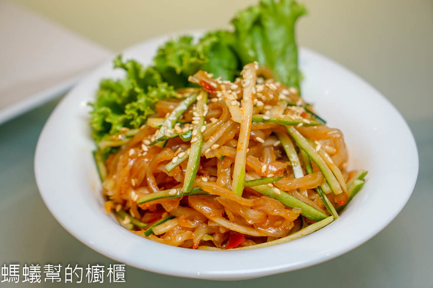 冰涼爽口的海蜇皮,加入小黃瓜絲、白芝麻、特調醬汁,涼拌方式呈現,海蜇皮一口吃下冰涼彈牙,小黃瓜絲爽脆,爽口開胃,味道相當雅緻,用這道小菜先甦醒五臟廟。
