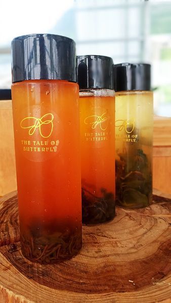 冷泡茶是帶點奶香味的金宣、濃郁香醇的炭培烏龍茶、尾韻甘爽的紅茶,皆為南投縣信義鄉玉山山脈與阿里山山脈之間,海拔約1200公尺—1500公尺的山坡地帶,遵循傳統古法製作烘培的高山茶葉。茶葉冷泡需經過一晚的時間,並可再回沖1-2次。
