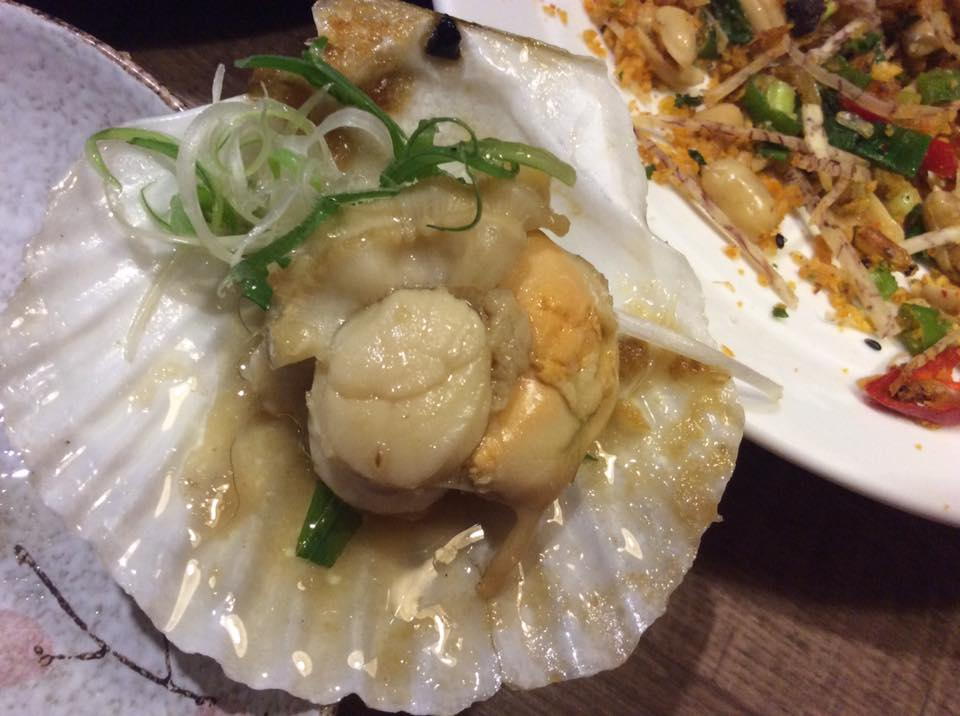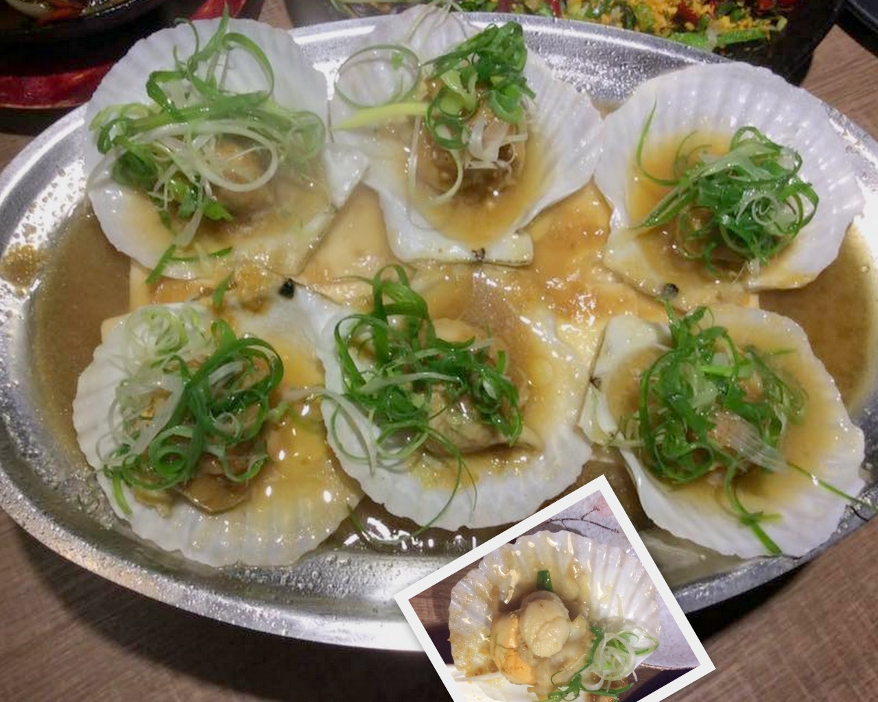 青翠鮮香的蔥絲被蒸氣烘托著;扇貝肉質鮮嫩、厚實,