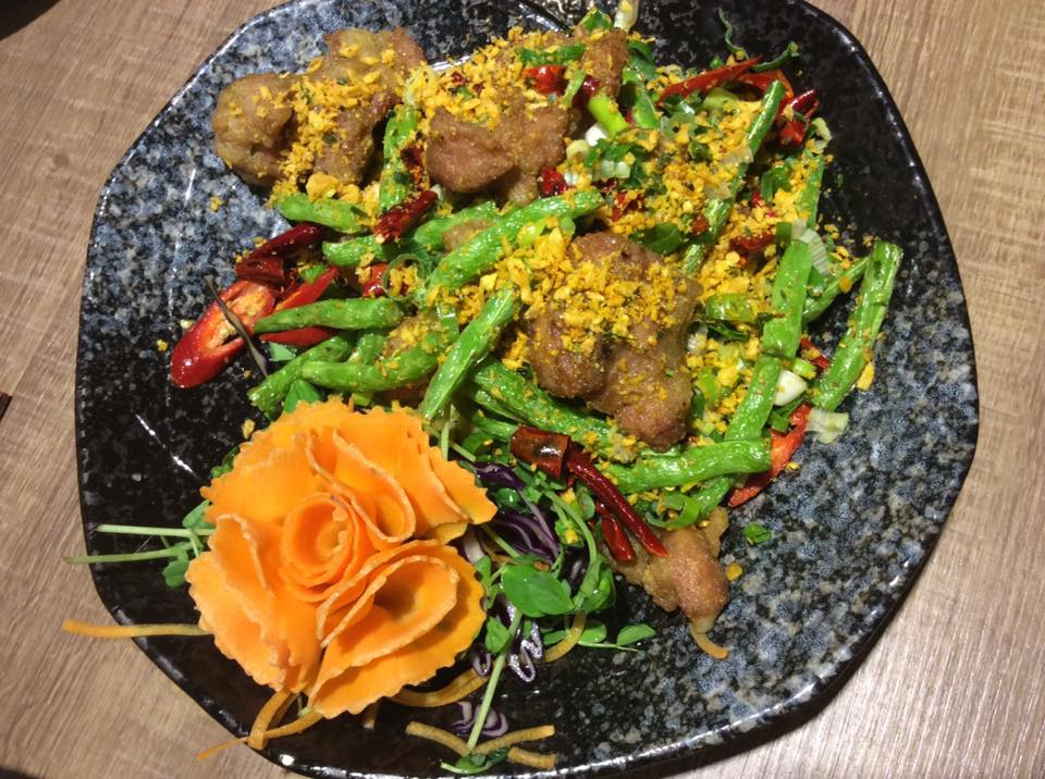 [避風塘子排] 俏麗的擺盤,胡蘿蔔的花綴,取川菜