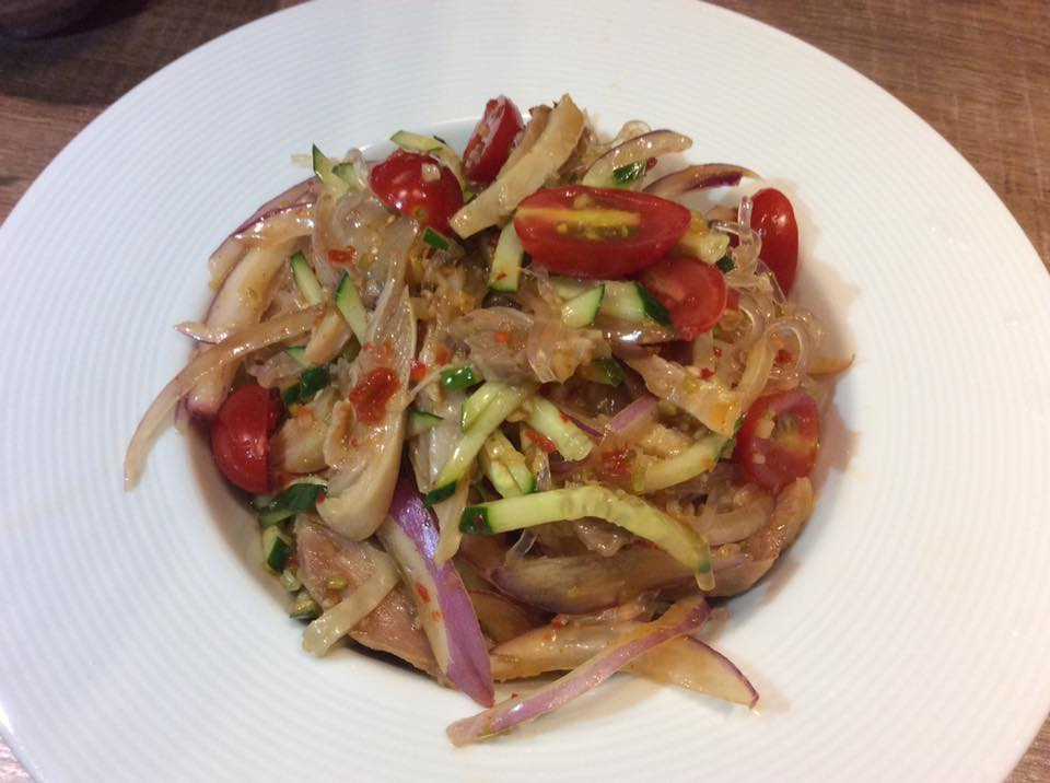 [泰式寒天雞絲]採用雞隻最精華的腿肉,細嫩好咬、清爽中