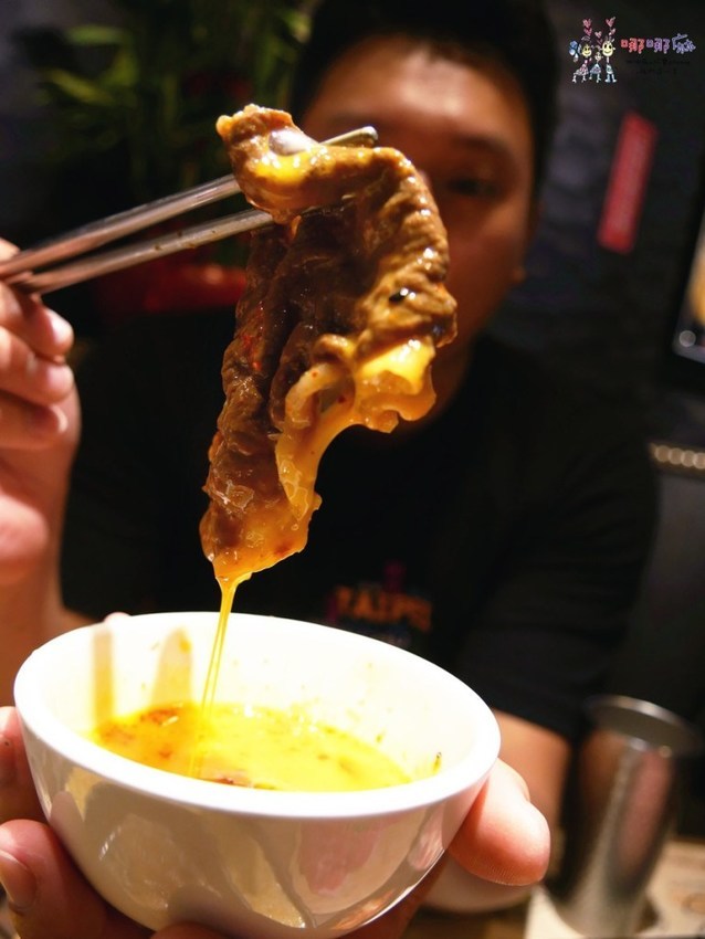而今天我們最好的畫面卻被旁邊的起司給搶了,瞧瞧他牽絲的畫面,嘖嘖!這韓國的玩意兒和日本的壽喜燒怎麼就這麼搭,毫無違和感呢?如果你跟我一樣很喜歡起司鍋,也喜歡壽喜燒,但卻又沒那麼喜歡韓式烤肉之類的,可以來這邊點一個起司壽喜鍋,肯定可以吃得很過癮。