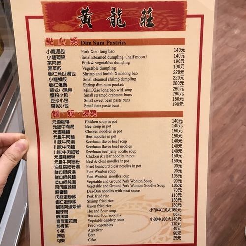 *🔸有一張菜單標示9種招牌料理,其中推出蘇式小湯包,一籠有18顆的迷你湯包,一口大小的形狀頗可愛,其他就是絲瓜湯包、菜肉餃、蝦仁燒賣等,還有元盅雞湯、元盅牛肉湯和蝦仁蛋炒飯