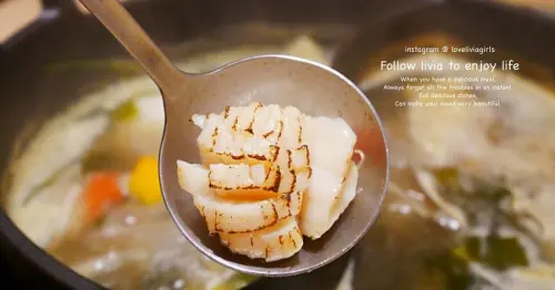 另外一款東北酸白菜鍋湯頭中真的有酸菜,不是用湯粉調味,真的是使用酸菜去熬煮,