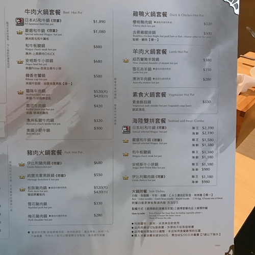 *📌賣牛肉、雞鴨、海鮮、豬肉、羊肉、海陸雙拼火鍋,價格在$280-$1380間,一班肉品價格親民且套餐內容豐富