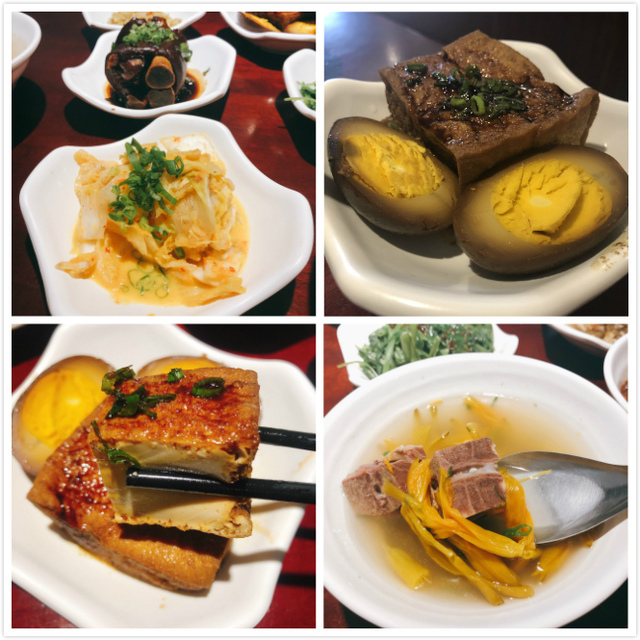 豆干、酸菜、小黃瓜等滿滿的配菜,加上亮著油光的控肉,頓時間食慾全來了