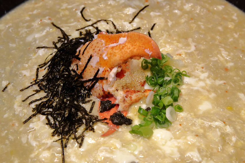 白飯加入涮過食材的濃郁湯底,熬煮至收汁,吸飽精華的粥,味道一級棒