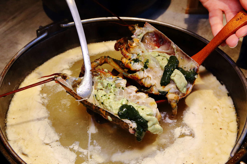 完全是痛風火鍋啊,看這龍蝦滿滿的蝦膏,高湯裡面滿滿都是龍蝦精華、蝦膏