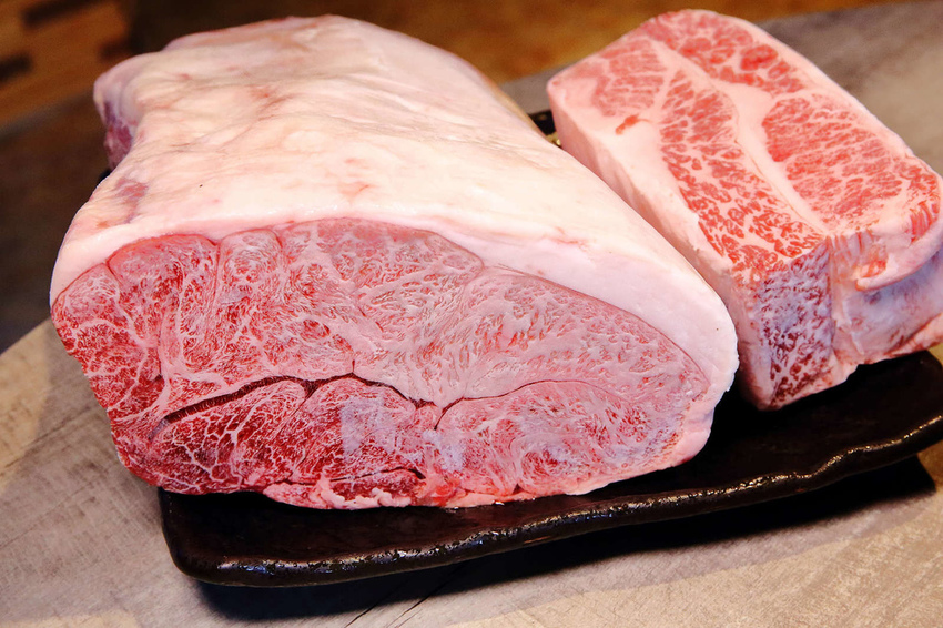 接下來,服務生端出A5鹿兒島和牛讓客人確認,你們看看那油花分布美得太不像話了(流口水)