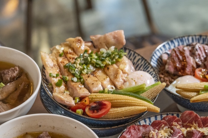 首先第一道登場的軟嫩牛排飯是將一大塊的舒肥牛排,炙燒到表面微焦,再搭配當季新鮮時蔬、半熟的溫泉蛋和古早味肉燥。「硬派主廚的軟嫩料理」堅持選用上等肉品,並採用低溫熟成的舒肥料理技法製作,每一塊牛排不僅能品嚐到原汁原味,軟硬適中的口感更是一極棒!