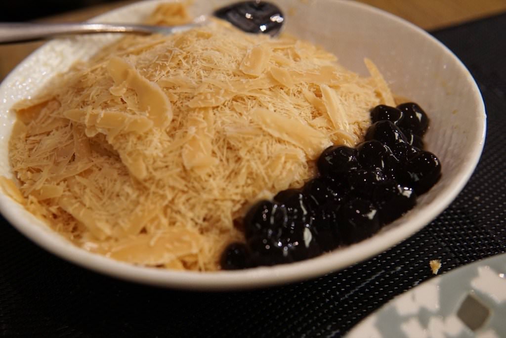 冰品有兩種現做雪花冰:珍珠奶茶與夏日芒果
