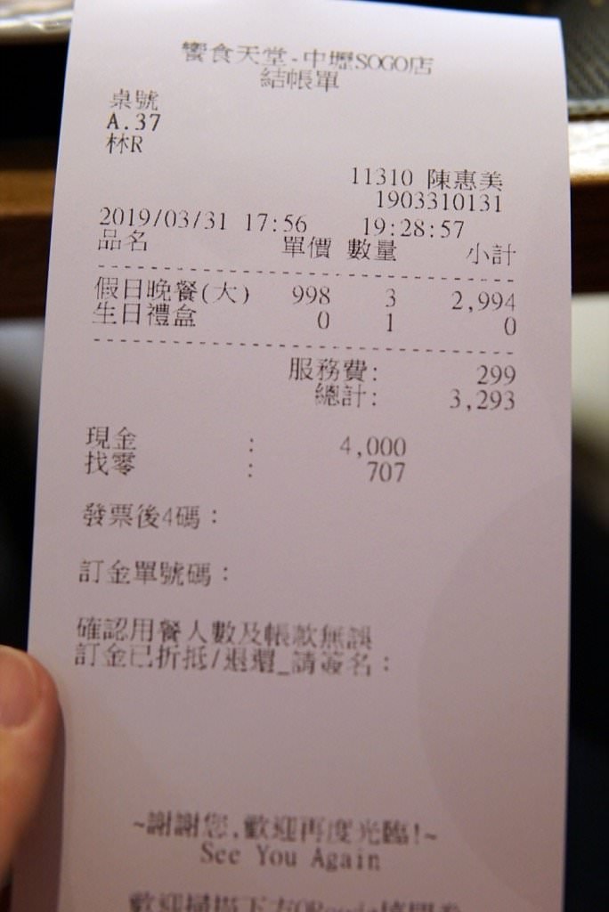 結帳時我們是直接原價付款,週六、週日、例假日一人$998另加一成服務費。