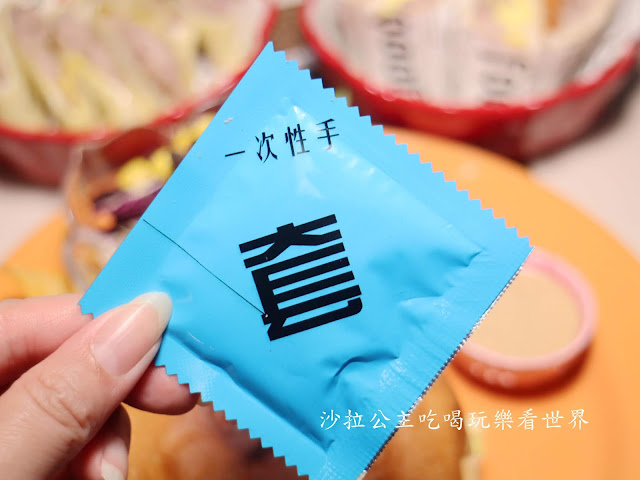 這個放在盤裡真讓人害羞,想那去了,這是手套啦!!現在有些濕紙巾也會設計這種包裝,為用餐帶點樂趣