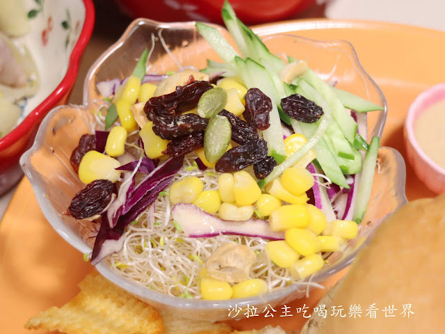 一旁還有餅乾,一邊拍照沙拉就已經在偷吃了