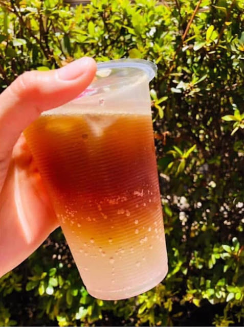 另一杯是檸檬氣泡冰咖啡,喝起來是淡淡檸檬味的咖啡汽水,是這樣說的嗎XD,喝得出來就是氣泡飲