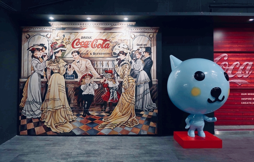 準時的抵達可口可樂大廳,先跟大廳的人員告知是參觀博物館的訪客,只要在一旁等候,也可以利用等候的時間先在大廳旁拍照喔!待等導覽人員確定好預約資料、人數就會統一帶著大家前往6樓的可口可樂世界博物館。