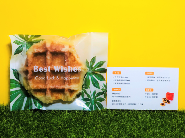 乳酪鬆餅的包裝袋也很網美的龜背葉圖案啊