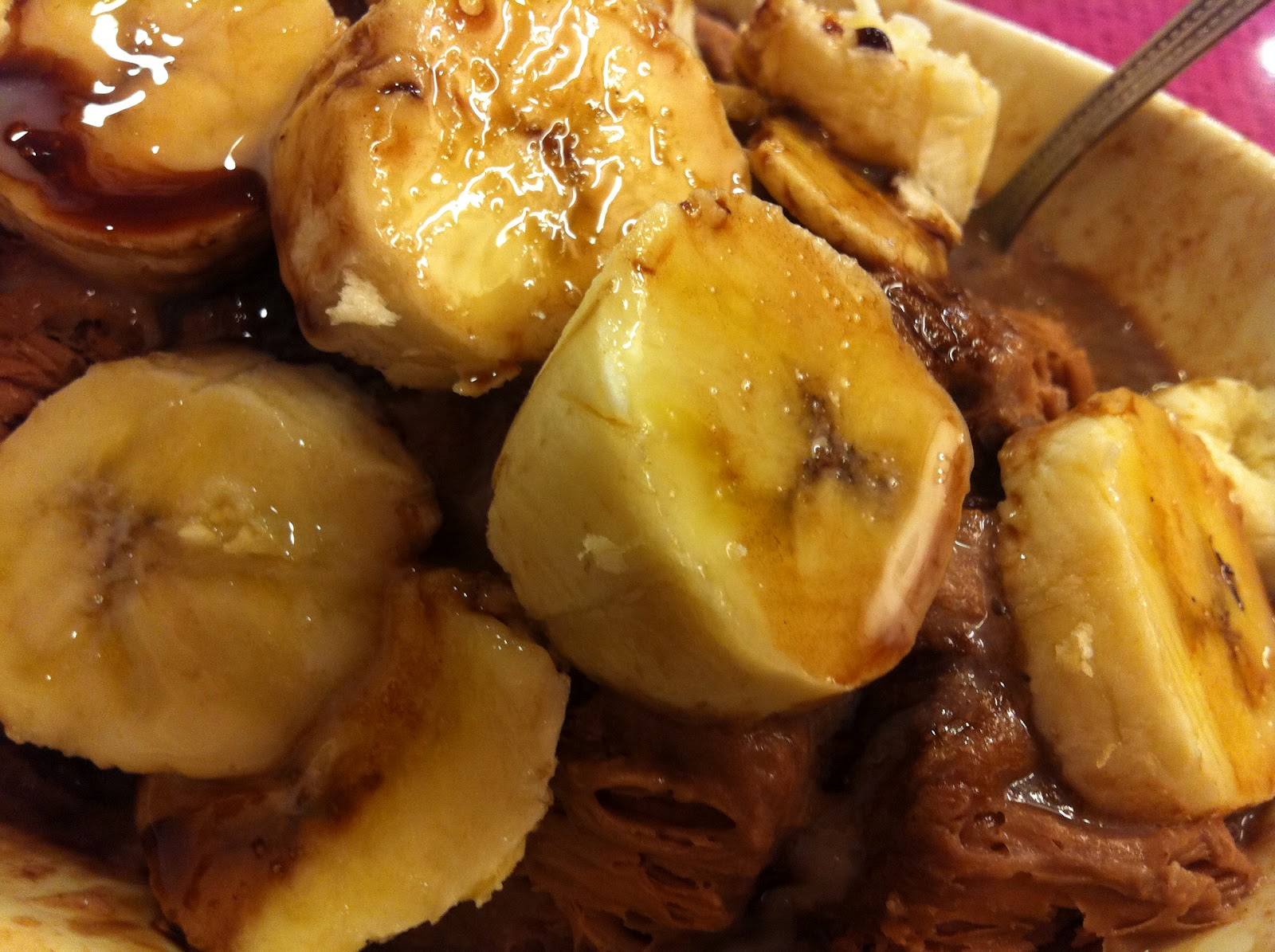 使用的是巧克力冰磚剉成的雪花冰,加上新鮮香蕉,淋上巧克力醬~~