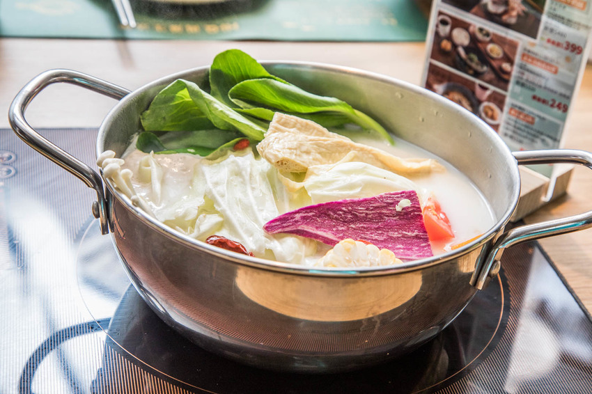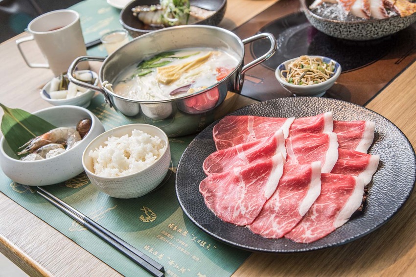 火鍋是營業時間內全天候供應,肉片和雙拼鱻魚可以2選1,鱻食火鍋可搭配不同價位肉品盤像是美國特級霜降牛、台灣香草黑豬雪花、紐西蘭羊肩肉等等,牛奶鍋底是以昆布精華湯底加入鮮奶及多種中藥材調配而成,口感清爽跟食材都是百搭