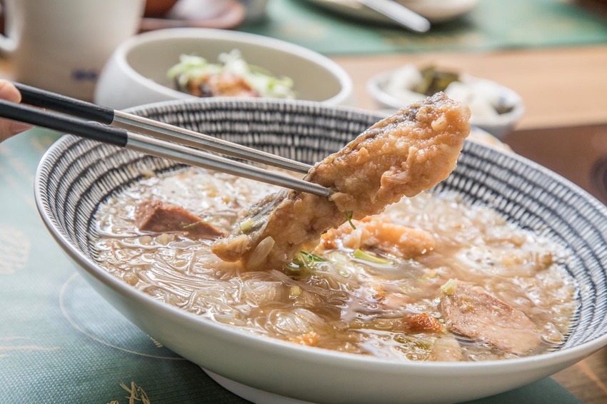 褐藻米粉既使吸收了大量的鮮美湯汁也能保持彈性口感,湯頭真的很鮮甜,不需要另外再加什麼胡椒粉調味,金鯧也相當厲害,肉質紮實有彈性,炸過再放進湯裡更易吸收湯汁,超好吃!