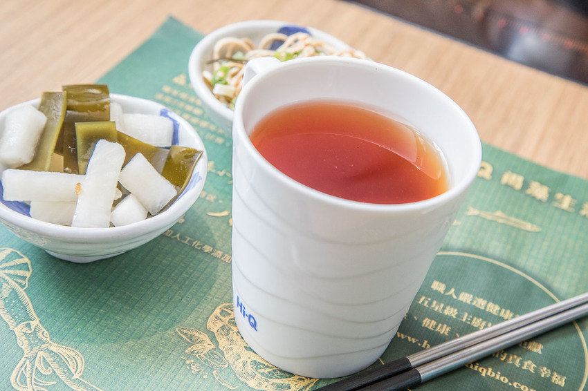 咬咬還倒了一杯褐藻茶,喝起來甜甜香香很順口