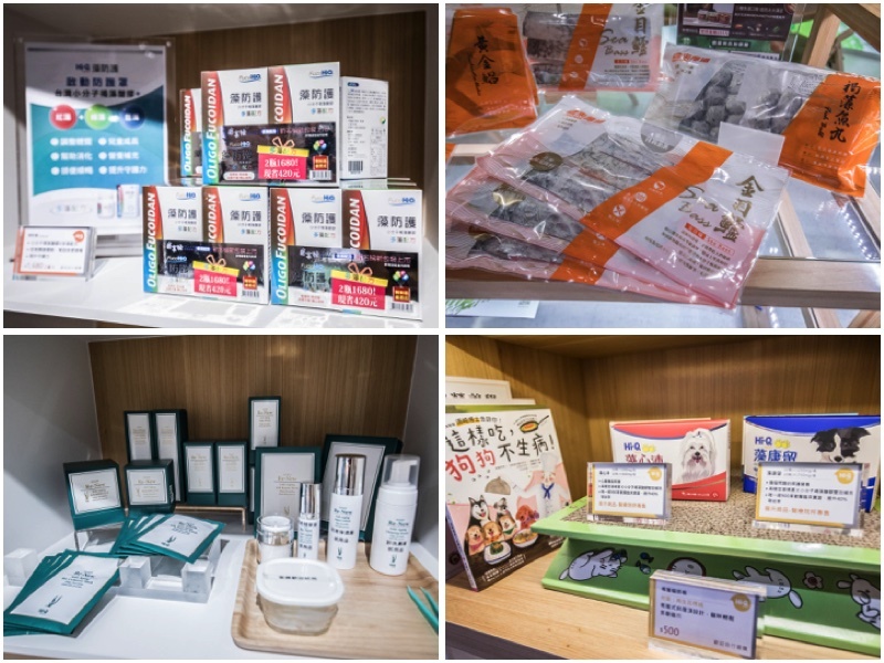 Hi-Q褐藻生活館一樓規劃展售各式褐藻產品、海洋文創商品等,Hi-Q褐藻生活館是由以生產褐藻糖膠的Hi-Q中華海洋生技所開設的褐藻體驗館,不斷研發出以褐藻為主的海鮮食材、保健食品和寵物健康食品
