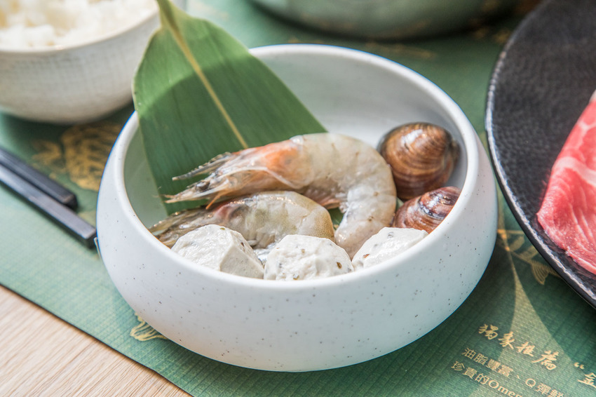 隨餐還附有搭配彈口不含添加物的Hi-Q褐藻魚丸與白蝦,魚丸口感實在讓人驚艷,魚鮮味十足還相當Q彈呢