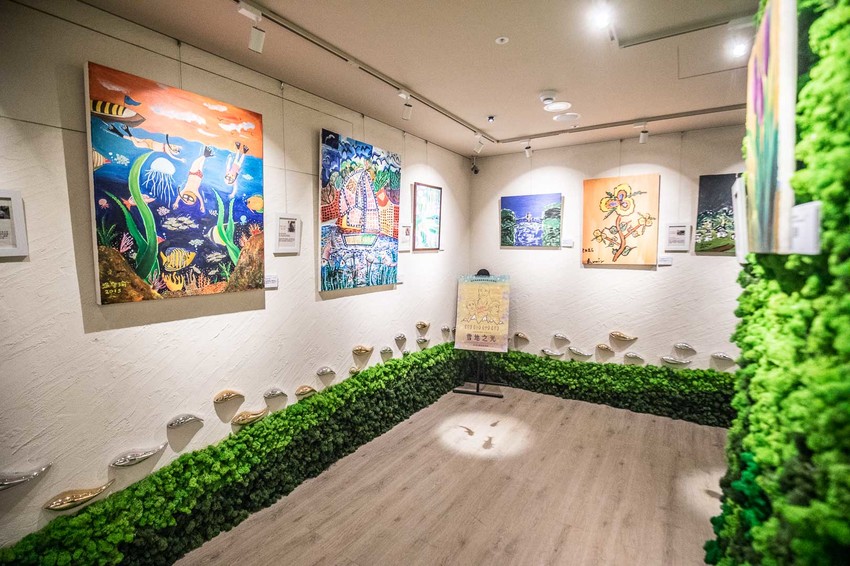 後方的藝廊則是許多公司贊助社福團體義賣的畫作,每一幅畫都有畫家背景相關介紹,這裡的空間如果有社福團體需要辦義展或義賣,也都會免費提供相關設備和資源呢