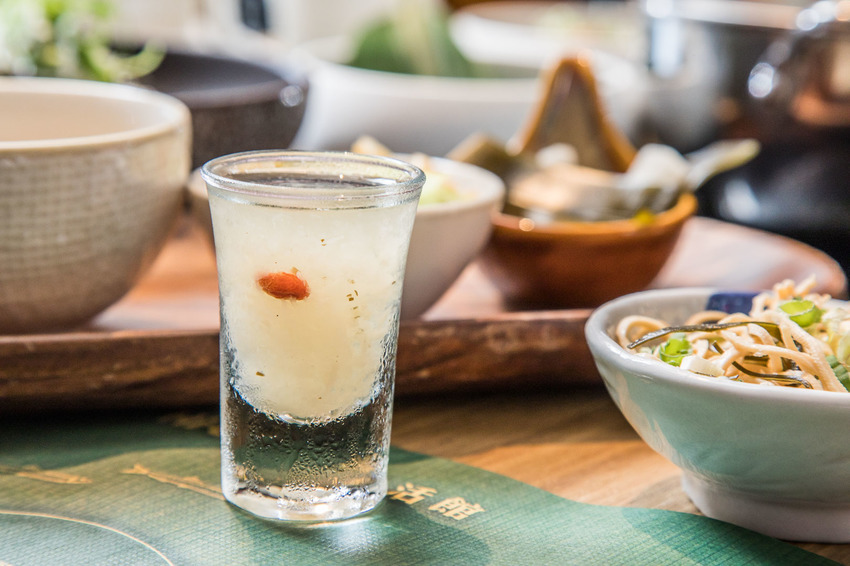漾采活顏貴妃套餐還附上一杯主廚特製的冰糖白木耳,裡面加了蘋果醋讓口味帶點酸甜感,白木耳有滿滿的膠原蛋白,養顏美容聖品!