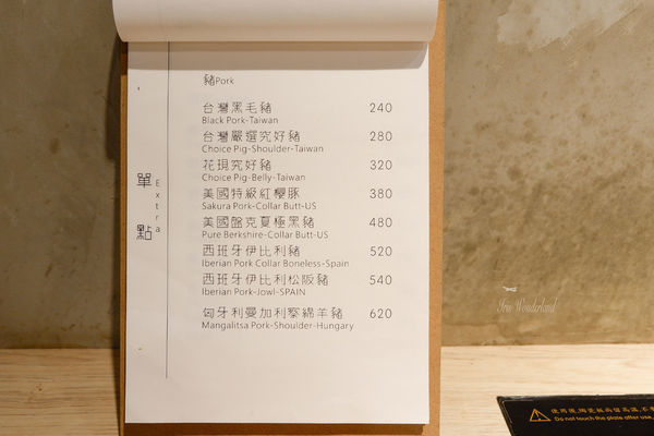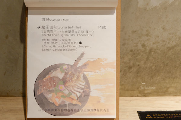 這裡的菜單很豐富,肉品、海鮮都有非常多選擇
