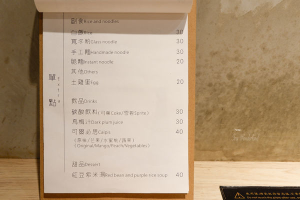 點餐方式:選擇湯底 > 主食 > 副食(寬冬粉、白飯、王子麵、手工麵)> 點心