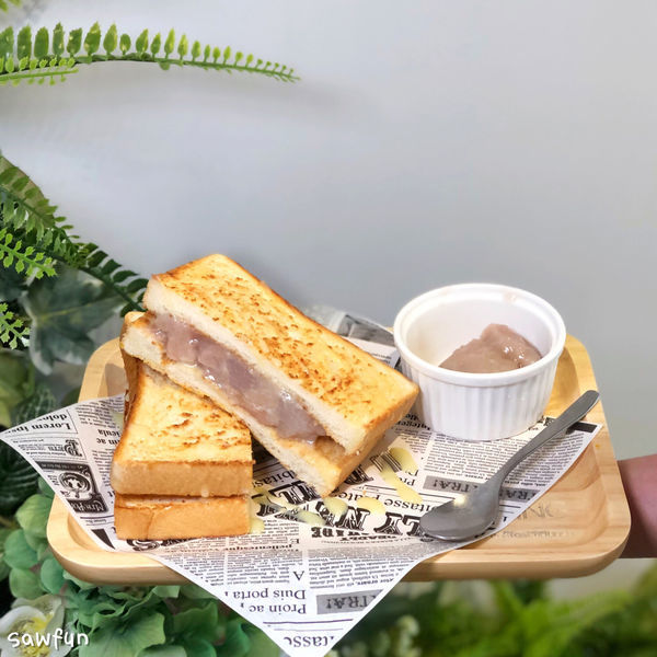 吐司淋上香甜的煉乳配上滿滿的芋泥內餡