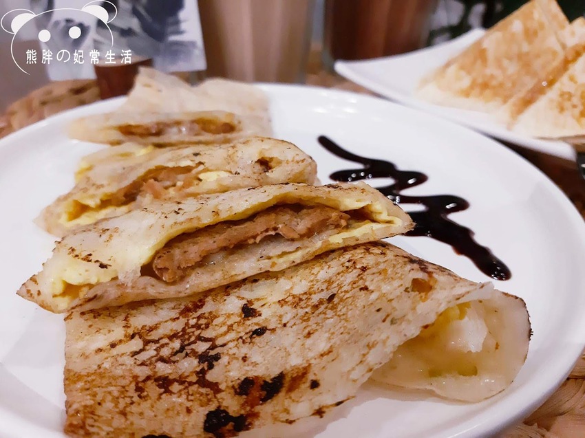 夾在蛋餅裡的燒肉,事前有醃漬過