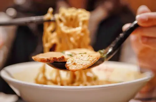 只差在湯頭是呈現單純的乳白色澤,沒有橘紅的辣油。