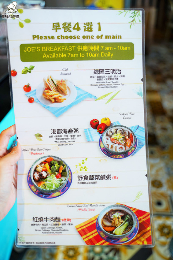 總匯三明治、港都海產粥、舒食蔬菜鹹粥(素)、紅燒牛肉麵(微辣)