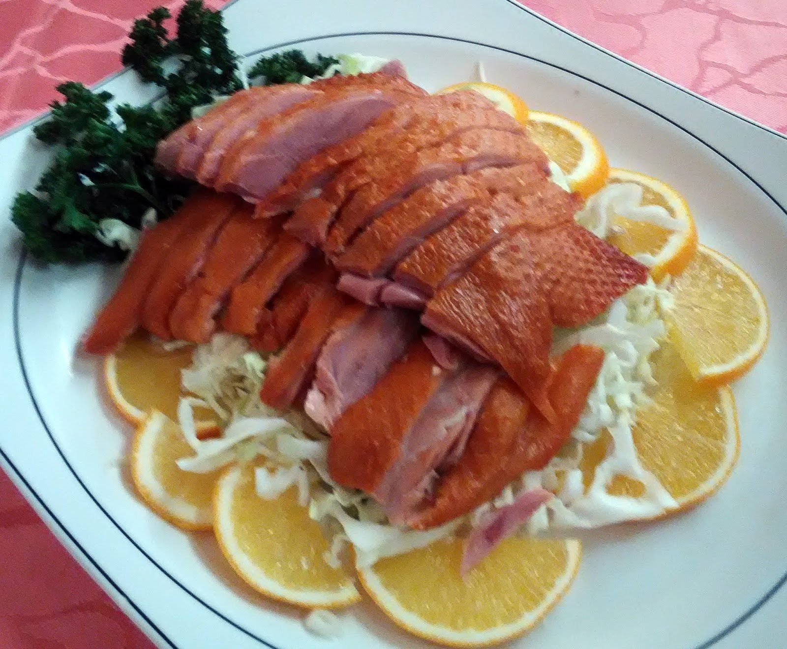 [蔗勳綠頭鴨]、[蔭瓜蒸肉]兩盤道地的台菜上桌,