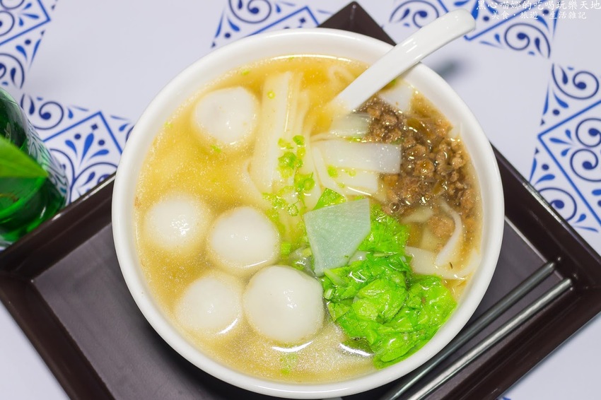 圓滾滾的雪白湯圓,在湯面載浮載沉,點綴上青綠白菜與芹菜、還有白蘿蔔和肉燥,就是一碗樸實簡單的傳統古早味兒!
