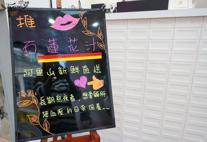 清甜可口的「石蓮花蜜汁」,喝得到淡雅的石蓮花味道,幾乎感受不到澀味,蜂蜜甜味,以及微酸檸檬香,微酸香甜、順口解渴…出乎意料外的好喝,和我想像中的石蓮花飲品完全不同,甚至還有點小驚艷,好奇問了老闆,原來還加入了少許鳳梨!!這杯有厲害到…能讓我一口氣喝掉半杯,大推!!