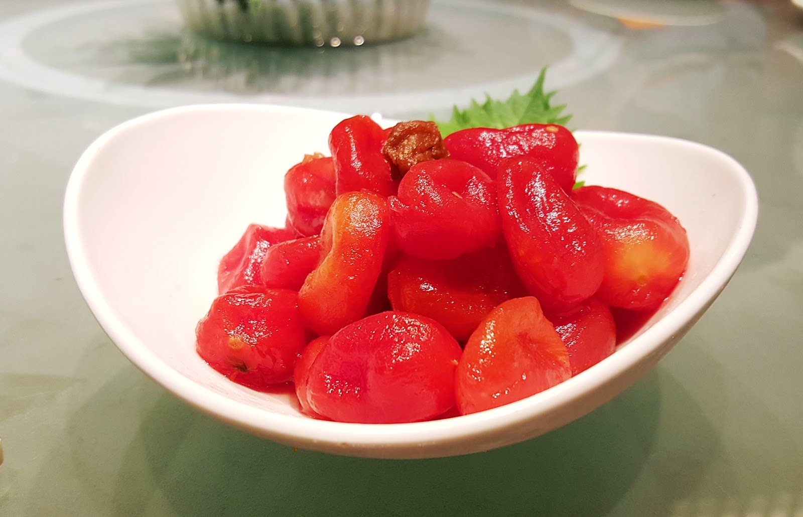 酸酸的話梅醃漬小番茄,甜度酸度適中,第一樣上這個很開胃。