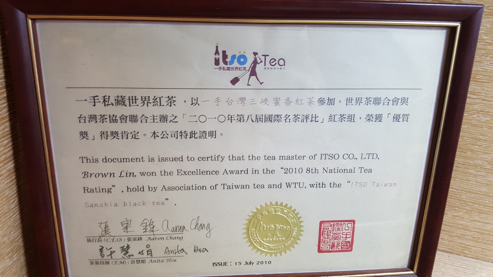 其中一種茶款「三峽蜜香紅茶」有得獎喔!菜單上也有可以點來喝看看。