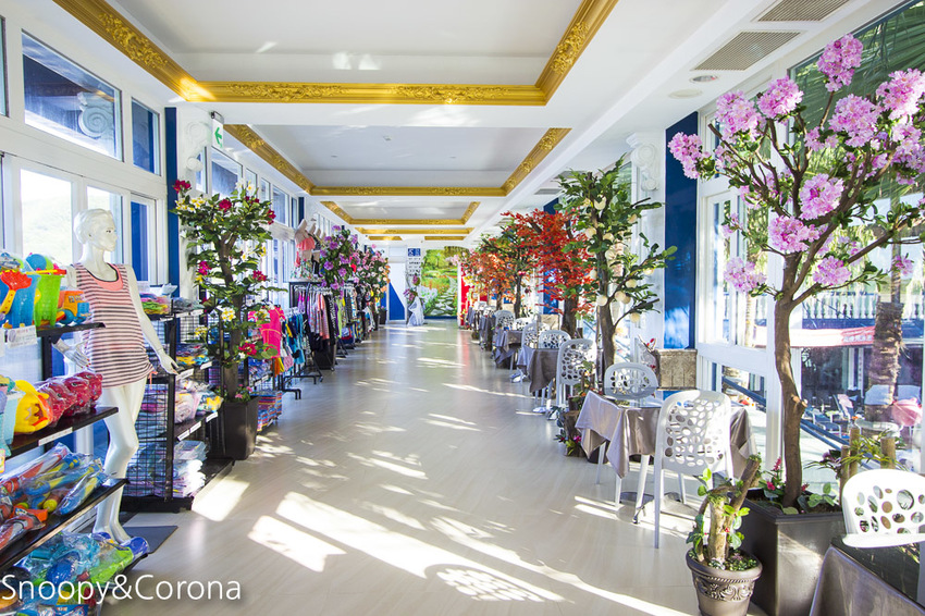 大廳旁販售各式泳衣、蛙鏡、玩水玩具、玩沙玩具…