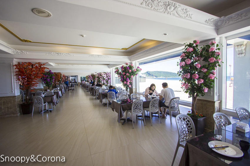 早餐用餐地點在海景餐廳,坐靠窗區可以看到沙灘景色。
