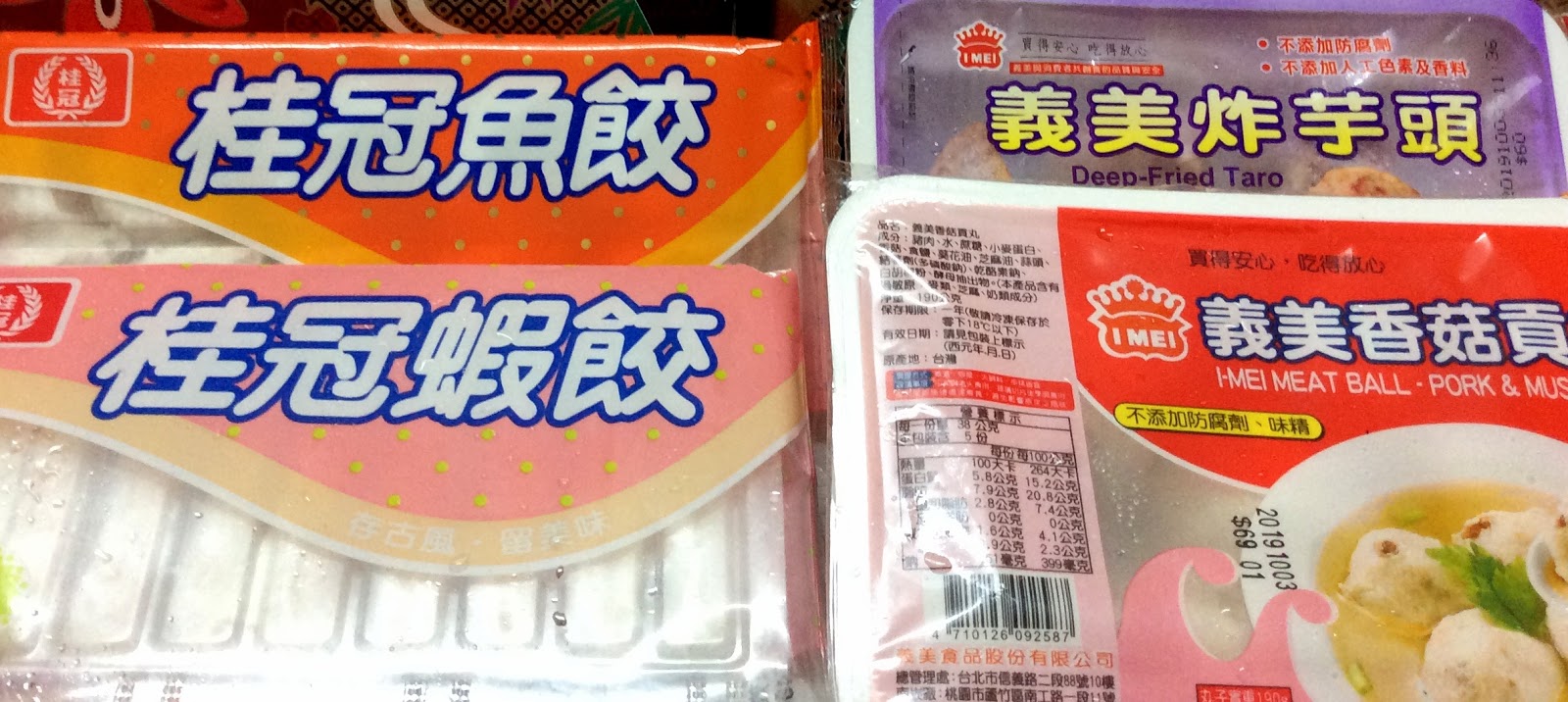 自己添購了桂冠魚餃、蝦餃、炸芋頭、香菇貢丸、花枝丸、