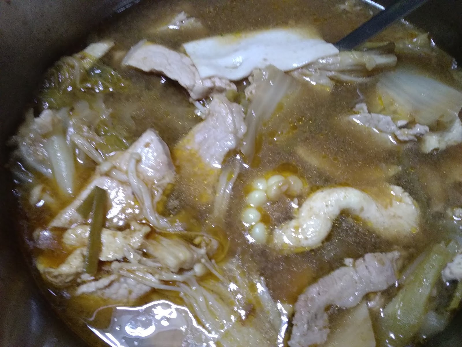 昨晚剩下的湯頭,今天中午再添加了里肌肉、雞胸肉、