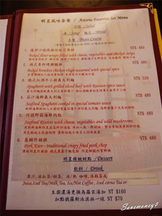 樓梯口的立牌有大致說明館內提供的俄式餐點,西式套餐和各種咖啡及花茶
