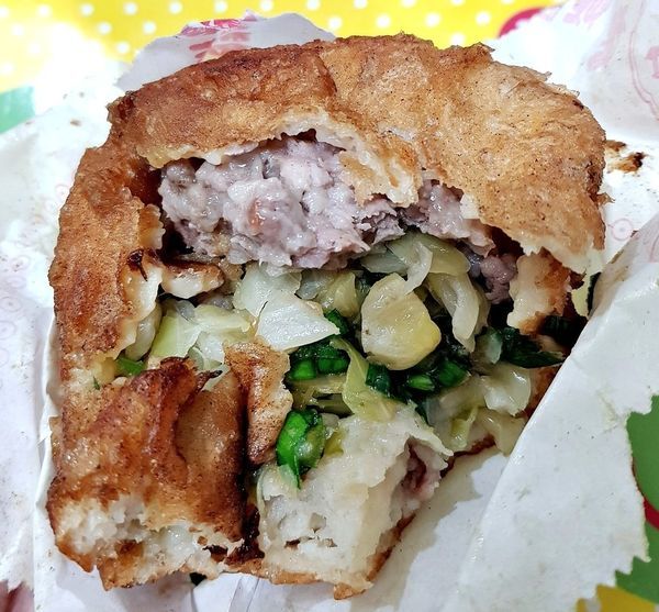 今天買了一個高麗菜跟一個高麗菜豬肉的餡餅